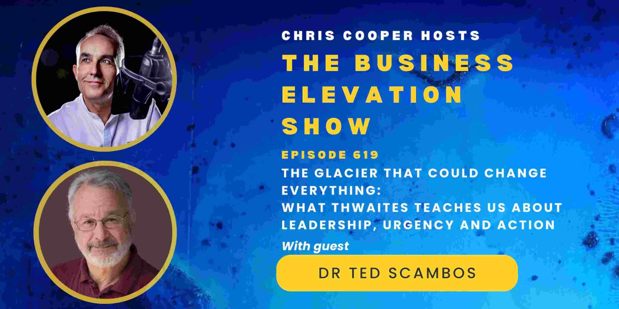 You can listen to this Business Elevation Show interview with Dr Ted Scambos & Chris Cooper here. Alternatively on Apple Podcasts, Spotify, Tunein, Amazon Music, iHeart Radio (latter US only).